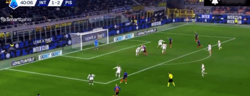 比赛刚开始没多久,国米就遭遇当头一棒。第11分钟,姆希塔良回传出现问题,索默后场出球被断,比萨前锋莫雷奥不停球直接吊射破门,国际米兰0-1落后,多少有些让人意外!